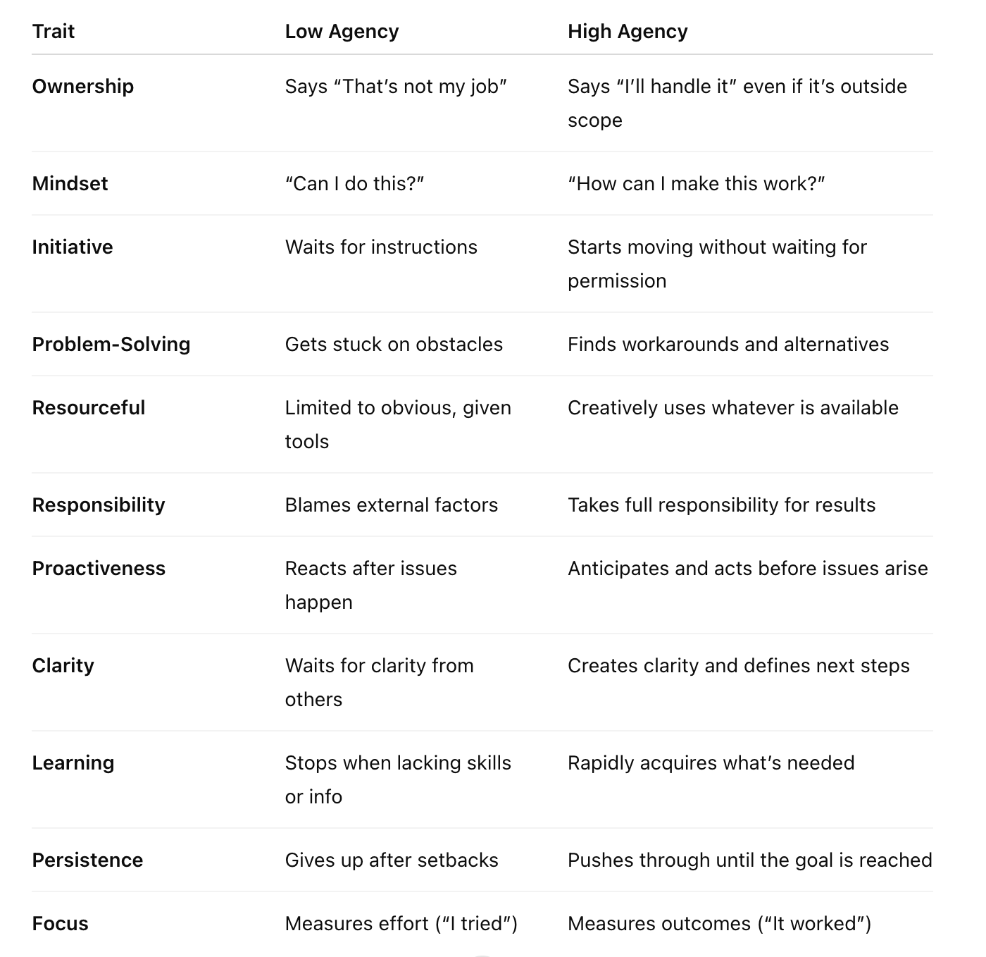 High Agency vs Low Agency Traits